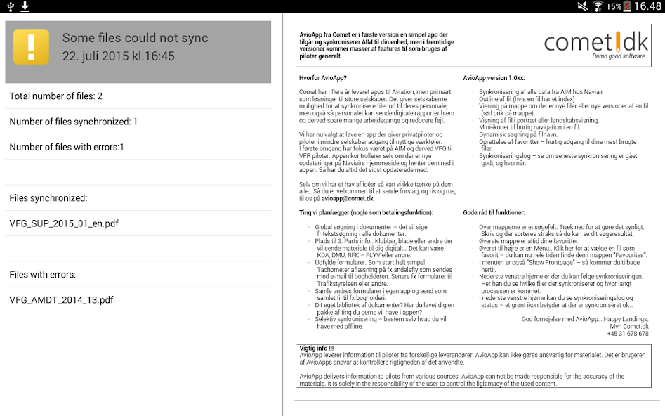 Хотя у нас есть множество идей, поэтому мы не можем думать о них всех ... так что вы можете отправить предложения, критику и похвалу, нам на AvioApp @comet.dk